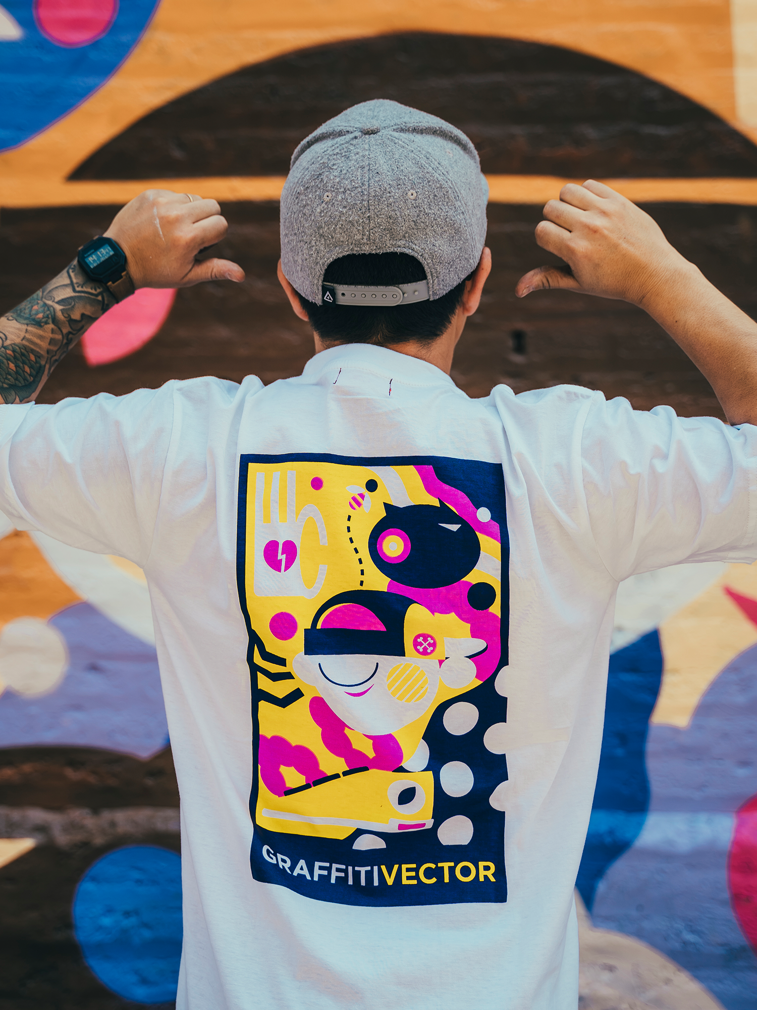 Polera de edición limitada, inspirada en mi trabajo de ilustración digital vectorial y graffiti. No disponible